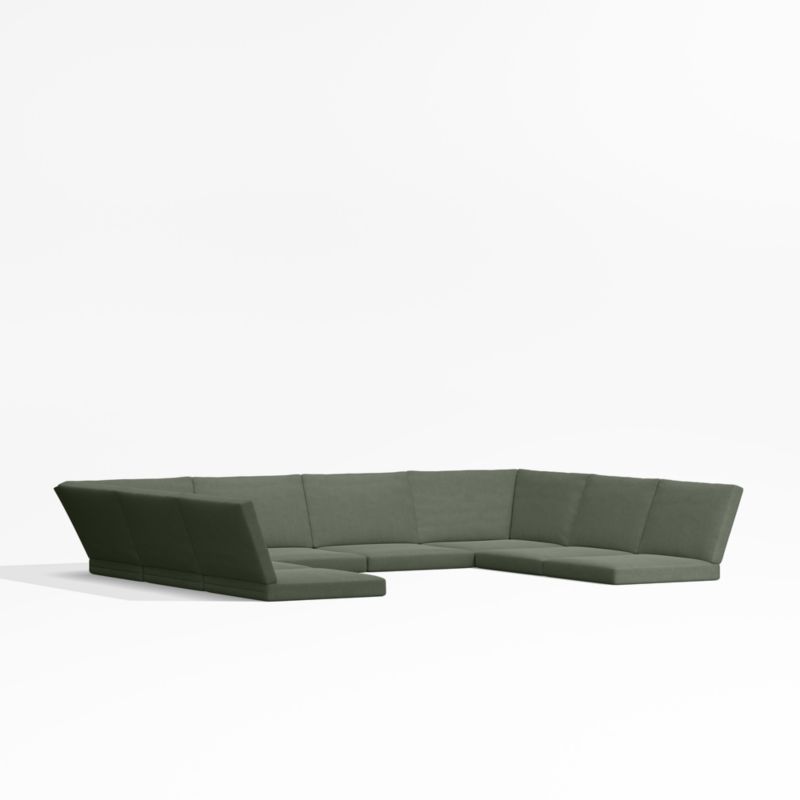 Add a layer of comfort to your Alfresco outdoor sectional with these sleekly tailored cushions. Covered with all-weather Sunbrella fabric in sage green, our exclusive cushions keep your six-piece petite U-shaped sofa looking fresh all season long.
