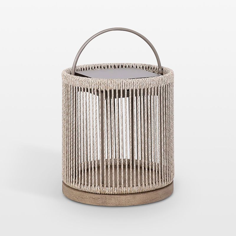Alto illuminates your porch, patio, garden or walkway with modern organic appeal. Natural-hued rope wraps the lantern, casting softly filtered light while pairing warmly with the teakwood base. Offering sleek contrast, the clean-curved aluminum handle makes it easy to tote Alto outdoors and reposition it as the evening progresses. The solar panel and included cable offer two charging options, and the low lantern automatically optimizes the brightness of its five LED lights based on its current reserve of power. Pair with Alto lanterns in other sizes for versatile illumination and charming outdoor entertaining.