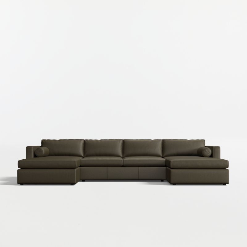 Aris Deep 3-Piece U-Shaped Leather Sectional Sofa with Double Chaise Lounge