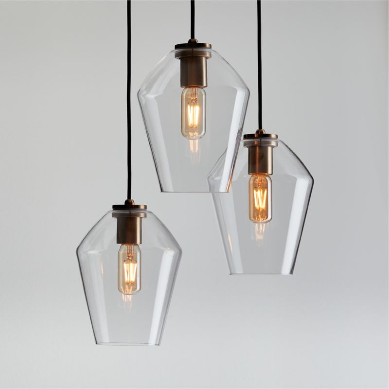 Arren Brass 3-Light Round Pendant with Angled Clear Glass Shades 16"