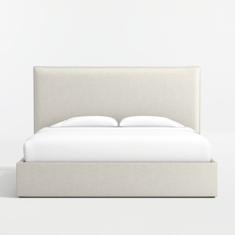 Our custom bed collection lets you mix and match our top-selling headboards and bases for a look that's truly yours. Our coastal-cool Arvada headboard offers pillow-like comfort and the casual look of a relaxed flange border. The matching upholstered base integrates three roomy drawers—one on each side and one at the foot of the bed—for storing off-season clothes and extra blankets. As a plus, the side drawers open with just enough clearance to avoid hitting nightstands and other bedroom furniture.