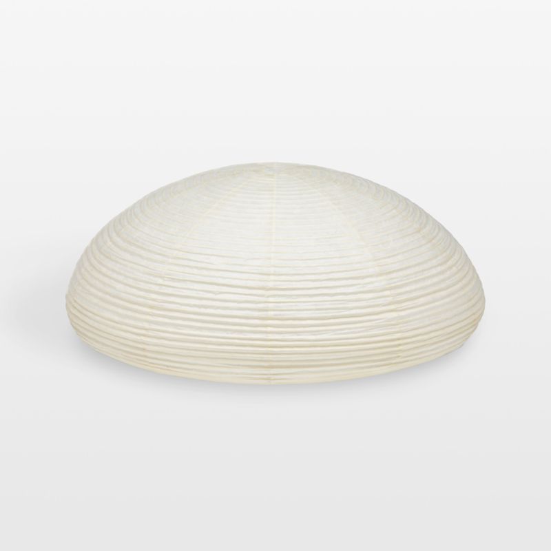 Pleated washi paper shapes an ethereal table lamp inspired by the moon. Asano wraps the wire frame's low, organic curves in white paper that diffuses light warmly. The table lamp has a serene, glowing presence on a side table or dresser.