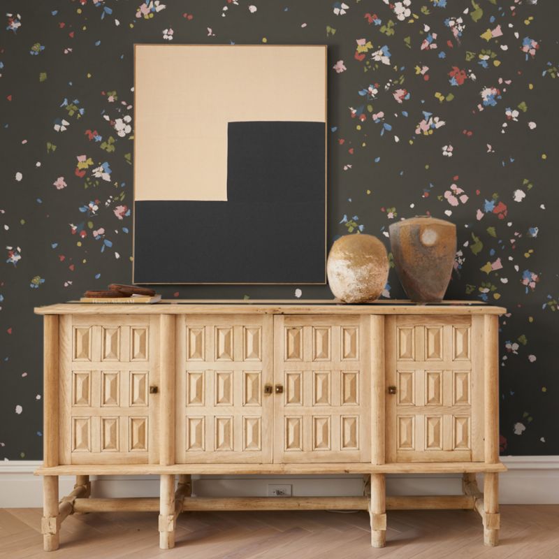 This whimsical wallpaper by Backdrop is based on a handpainted work of art created with thick paint and a palette knife. Painterly, abstract petals fall and gather on a black backdrop, creating a beautiful mural-like effect in kids' bedrooms or playrooms. The wallpaper is printed with subtle texture on a non-woven material. Its design-forward pattern adds dimension to a kid's sleep space or playroom.