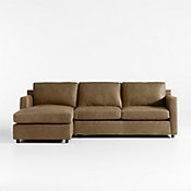 Barrett makes leather seating comfortable, casual and modern. Like fine leather apparel, the full-grain leather feels buttery to the touch and tailors the sectional's clean lines with a graceful drape. Consisting of a right-arm chaise and left-arm sofa, the two-piece sectional sits upright and comfortable and is styled with track arms, topstitching and recessed legs that float its stylish silhouette.