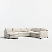 Barrett makes modern sectional seating affordable and carefree. Upright yet comfortable, this versatile sectional looks casual and clean in a contemporary fabric that feels great to the touch and is so durable you don't need to worry about spills or pets. The four-piece sectional is designed to always look its best, even in high-traffic family rooms. The Barrett II 4-Piece Right Arm Chaise Sectional is a Crate & Barrel exclusive.