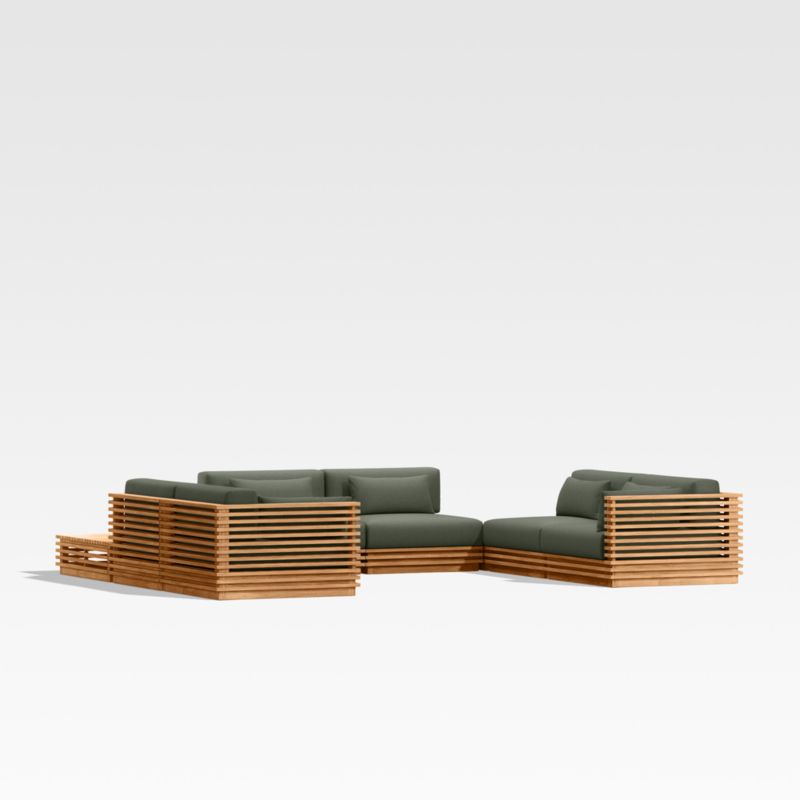 • View Batten Natural Teak 8-Piece U-Shaped Outdoor Sectional Sofa with Corner Coffee Tables & Cast Sage Green Sunbrella ® Cushions - image 1 of 14