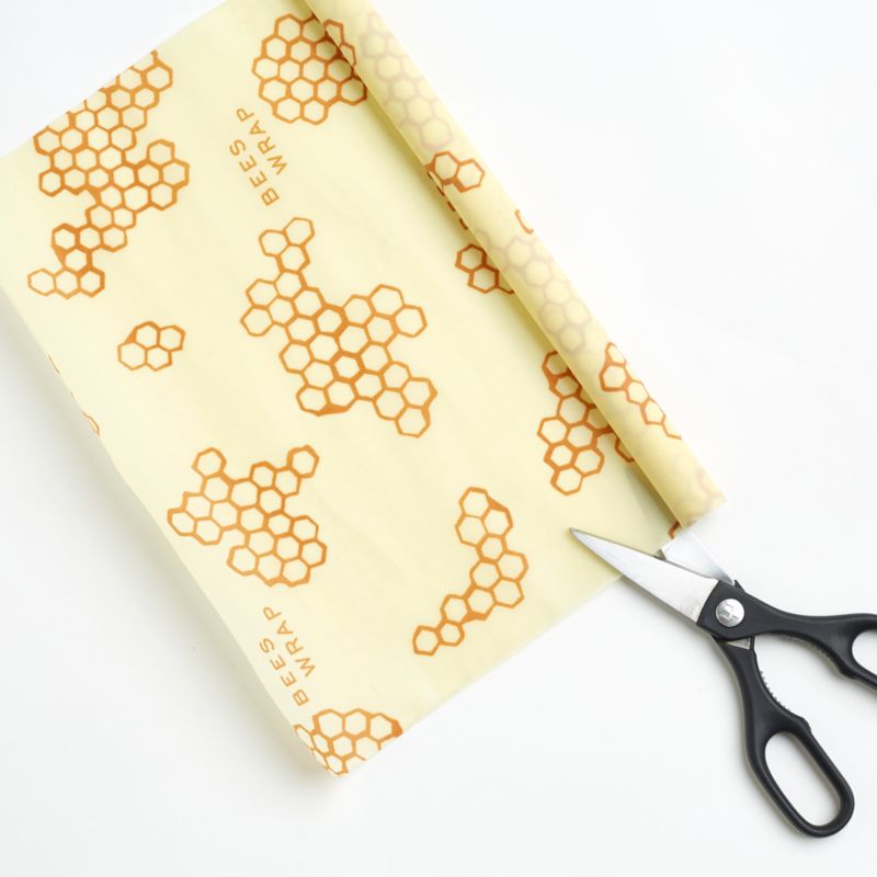 An ingenious and natural alternative to plastic wrap, sustainable Bee's Wrap seals foods using the magic of beeswax. Cut the beeswax- and jojoba oil-infused organic cotton to size, hold in your hands to soften the wax, wrap over container or food item and press lightly to form a seal. When the reusable wrap has cooled, it will hold the shape and seal you created. The roll offers customizable sizes and shapes to create a breathable seal over cut produce, leftovers, baked goods and more.