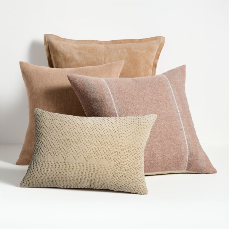 Sashiko Organic Cotton Velvet 22"x15" Camel Tan Throw Pillow Cover