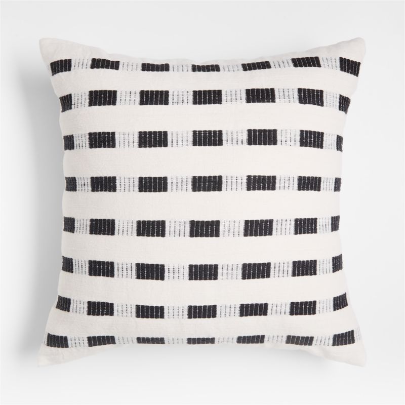 Toss the Bertu pillow on sofa or chair for a relaxed-yet-refined look rich with hand-sewn intricacy. Exposed and veiled sections of thick black yarn woven on the white ground create expressive dashes that form the fabric's vibrant and textural grid. Made of supersoft Egyptian cotton, the pillow is finished with knife edges and an almost-invisible zipper. A plush microfiber insert is included.