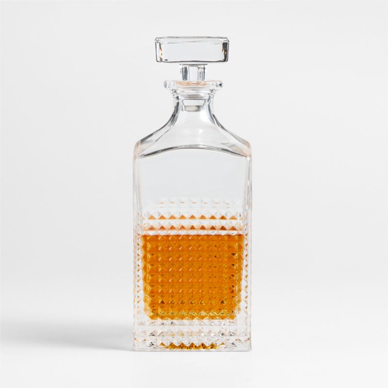 The perfect accessory for your bar cart, this beautifully crafted decanter has a classic squared-off profile, textured with a stunning geometric motif. With its exceptional clarity and craftsmanship, the decanter brilliantly showcases fine whiskey, bourbon and scotch.