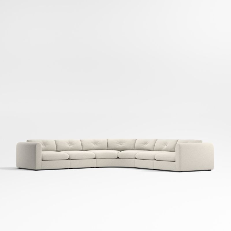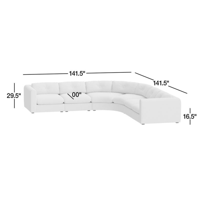 As cool and casual as its namesake Chicago neighborhood, our Bucktown sectional sofa is an upbeat modular design with clean lines and curved details. A wedge joins two armless chairs and right- and left-arm chairs to give the five-piece sectional its distinctive curve. Propped on thick decks, rounded seat cushions sit deep and comfy, while pillow backs bring in a bit of 1970s style with a single, oversized button tuft on each. Waterfall construction of the arms and backs grounds this fresh-styled sofa in contemporary curves.