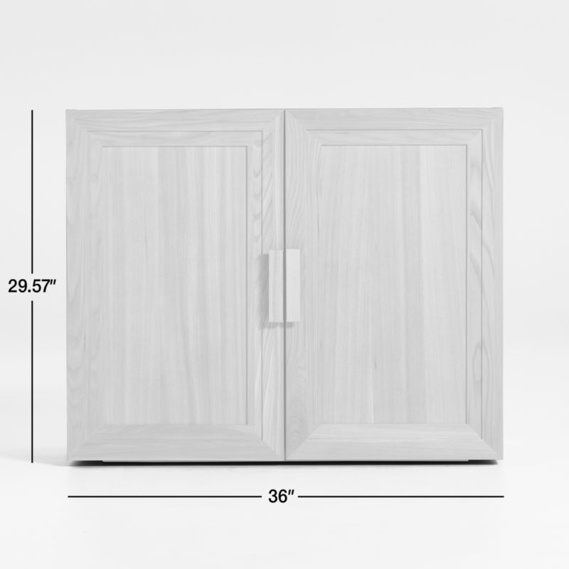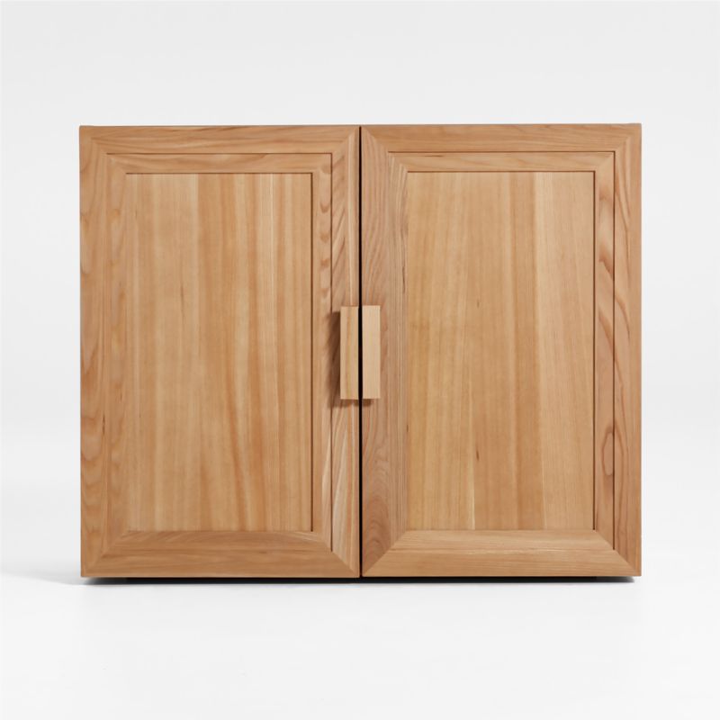 Inspired by vintage barrister cabinetry, our Calypso modular storage system lets you customize storage in style. The cabinet base conceals media components, books or dinnerware behind flat-face doors accented with stepped trim. The elm wood base is heavily wirebrushed and given a natural finish to bring out the wood grain. Blocky pulls add modern details to this timelessly styled wood cabinet base, a Crate & Barrel exclusive.