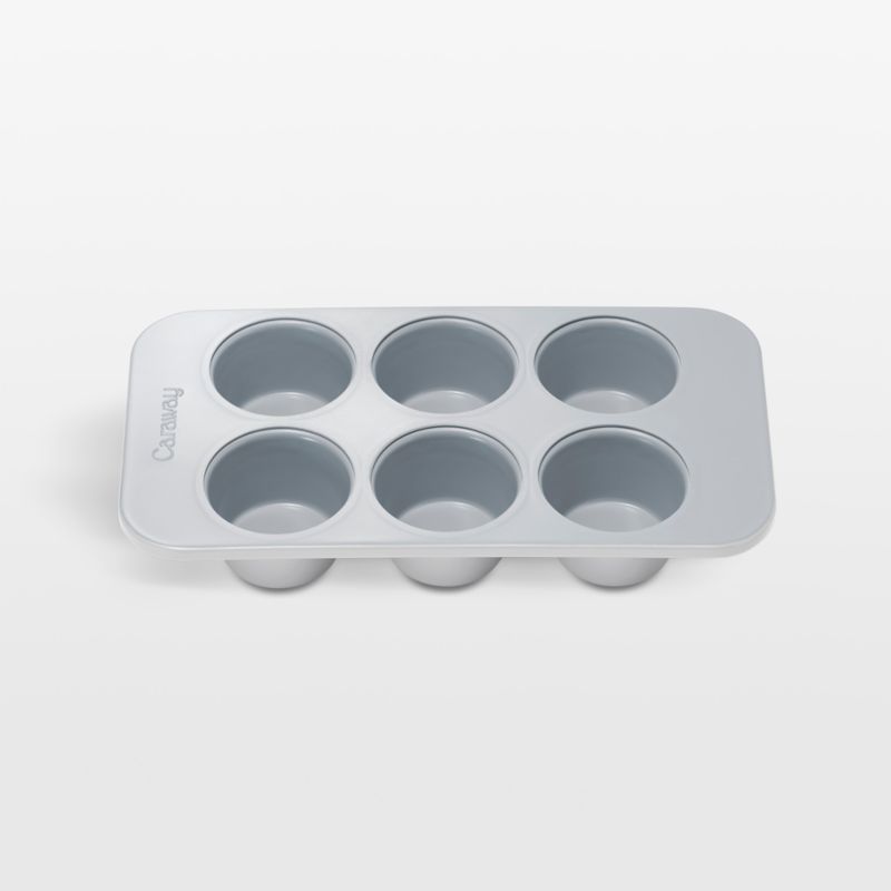 Bake a half-dozen muffins, cupcakes or individual frittatas in this must-have mini muffin pan. Finished in a naturally non-stick ceramic coating, the aluminized steel pan releases baked goods easily for quick cleanup. The creamy grey exterior gives the muffin tin a fresh look. Pair with our other Caraway Home mini pans to build a modern bakeware collection perfectly sized for small-space kitchens and compact ovens.
