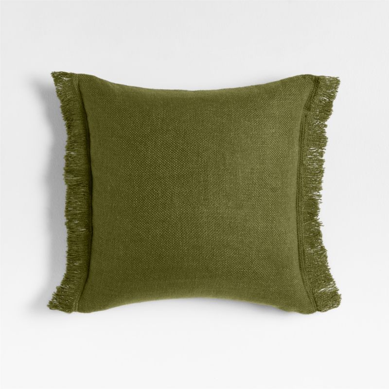 An irresistibly soft and slubby weave gives this throw pillow a relaxed look and feel that you'll want to snuggle up with every day. The inclusion of silky viscose adds a sophisticated sheen to the organic beauty of sustainably sourced linen fibers. Yarn-dyed a warm green hue, the fringed pillow looks chic and casual tossed on a sofa, armchair or bed-especially paired with the matching throw blanket. Our exclusive pillow includes your choice of a plush feather-down or lofty down-alternative insert.