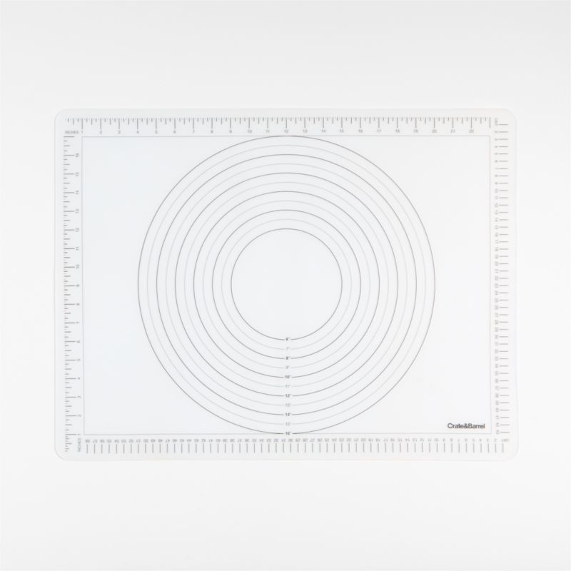 Our pastry prep mat takes the guesswork out of rolling dough for cinnamon rolls, pies, strombolis and more. Printed crisply in black on clear translucent silicone for easy legibility, the mat features width and length measurements in inches and centimeters as well as concentric circles ranging from 6 to 16 inches in diameter. Once your pastry project is complete, the mat cleans up easily in the dishwasher and rolls up for compact storage between uses.