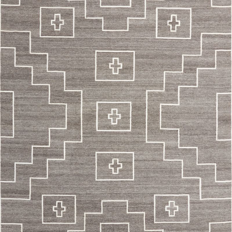 Inspired by traditional Moroccan rugs, Cuzco reimagines their fascinating geometry in a modern performance rug. The dynamic pattern in ivory on heathered charcoal grey loosens up linear motifs for a fresh look. Skilled artisans weave performance fibers by hand to create this eye-catching flatweave rug ideal for entryways, mudrooms and other high-traffic areas.