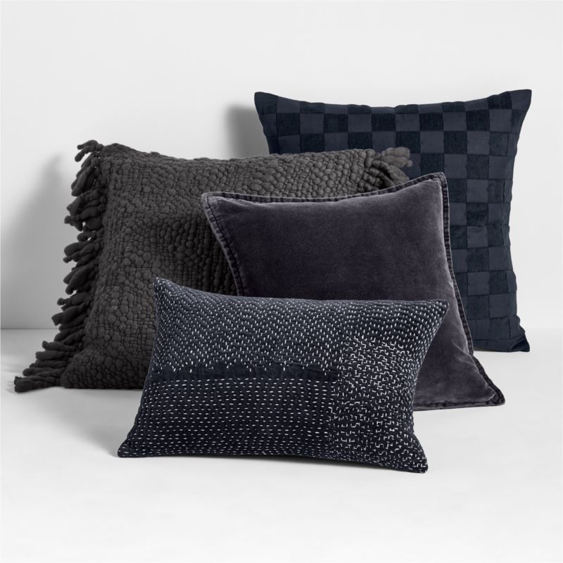 Sashiko Organic Cotton Velvet 22"x15" Deep Indigo Blue Throw Pillow with Feather Insert