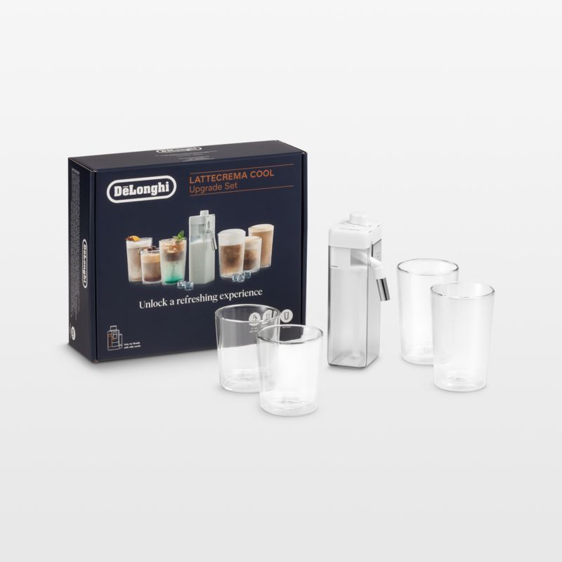 Adore your De'Longhi Rivelia fully automatic espresso machine even more with this upgrade set designed for cool drinks. Attach the LatteCrema carafe to the machine—at the press of a button, it froths dairy or plant-based milk into velvety smooth cold foam. The froth tops iced lattes, cold brew, iced flat whites and other cold drinks to perfection. Serve your creations in the four double-walled glasses that look lovely (and help keep drinks cold). This set makes a thoughtful gift for anyone enamored with their De'Longhi Rivelia.