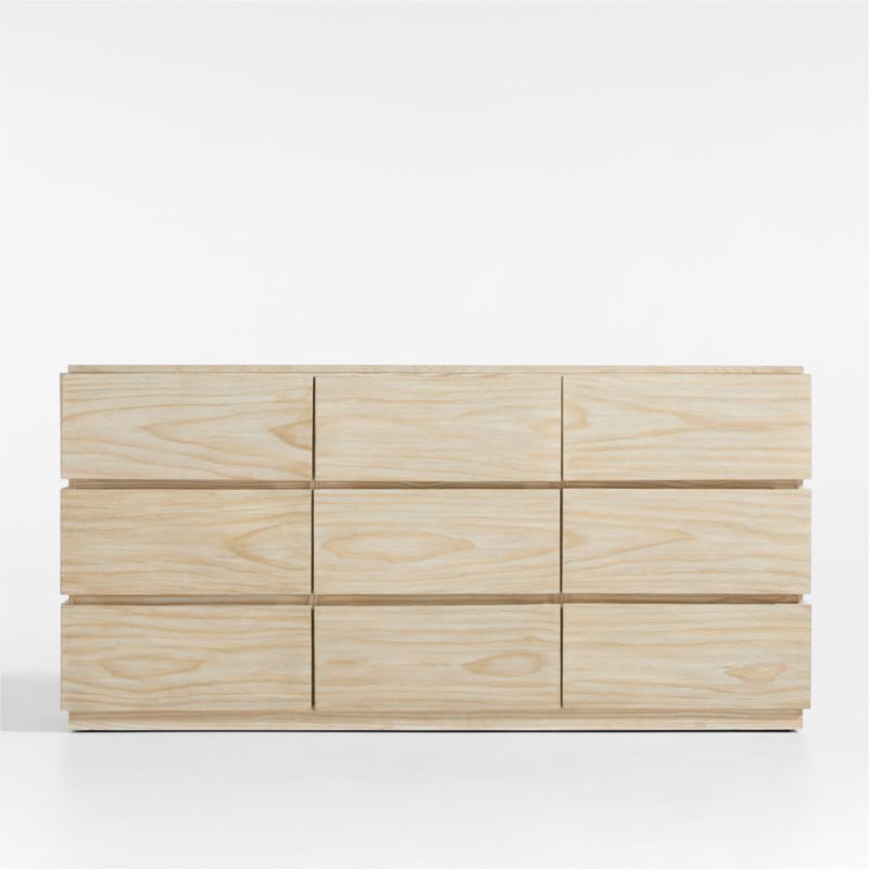 Refresh your bedroom decor with our breezy, coastal-inspired Ensenada dresser. Flat-front drawers, grooved finger pulls and a plinth base put all the focus on the dynamic grain of pine veneer, enhanced by a light ceruse finish. Ours exclusively, the nine-drawer dresser pairs with the Ensenada nightstand for a coordinated look.