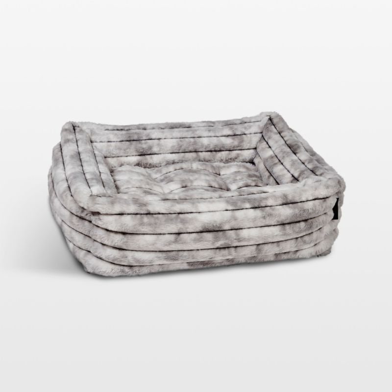 Good dogs deserve the best, including this overstuffed dog bed covered in ultra-luxe faux fur. Mottled in silver, grey and white, the super-plush square provides indulgent comfort for your best friend and decor-friendly good looks for you. The elevated border provides plenty of resting spots for your dog's head, and the tufted cushion in the center comes out to double as a mat for a crate. When it's time for a wash, the zippered cover comes quickly and goes back on with ease.