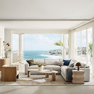 Add timeless comfort and style to your home with a fabric sofa from Crate and Barrel. From 100 percent cotton to fiber blends, we have a full range of fabric sofa styles that look great in living rooms. Many of our sofa fabrics are pet- and kid-friendly and designed to last for years of use. Choose from a variety of fabric sofa pieces, including loveseats, chaise lounge chairs, three-seat sofas, sleeper sofas and sectionals. Our couches have varying levels of seat depths, heights and softness so you can find the style that fits. To create a complete living room furniture collection, try our loveseats, accent chairs, chaises and other furniture pieces. In addition to living room styles, we also offer outdoor patio sofas with fabric Sunbrella cushions. Shop our selection of fabric sofas at great prices.