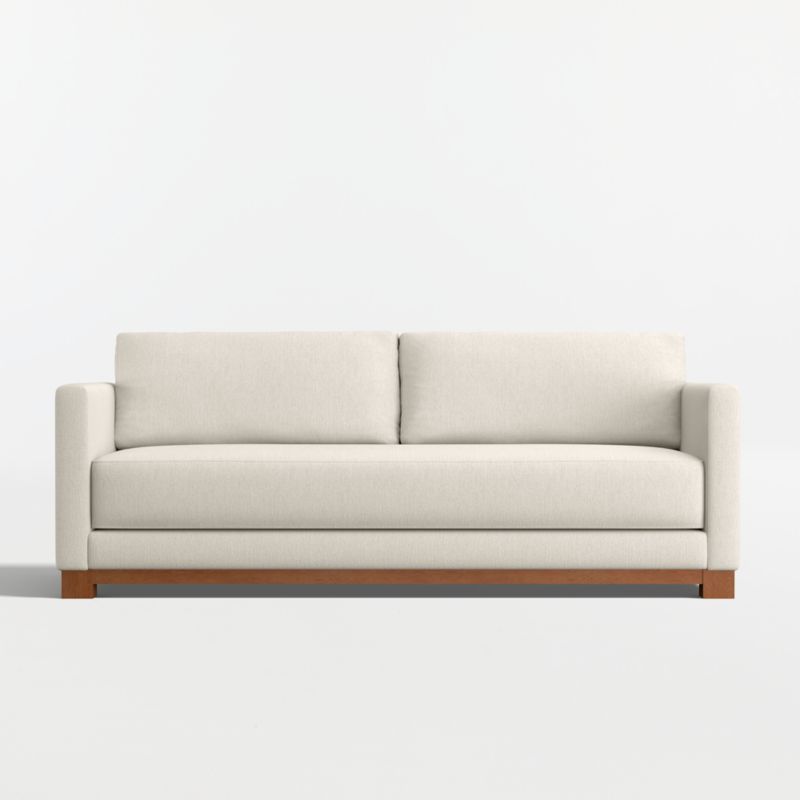 Striking the perfect balance between maximum comfort and modern style, our Gather sofa is clean-lined and current. Anchored by a wood base, the sofa features a boxy, extra-plush seat made with inner-coil construction for maximum comfort and durability. Fiber-filled back cushions settle you in for the ultimate lounge.