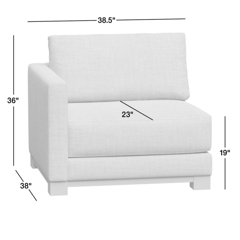 Striking the perfect balance between maximum comfort and modern style, our Gather sectional collection is clean-lined and current. Anchored by a wood base, the sectional pieces feature boxy, extra-plush seat cushions made with inner-coil construction for maximum comfort and durability. Fiber-filled back cushions settle you in for the ultimate lounge. Combine sectional pieces to create custom seating to suit your space.