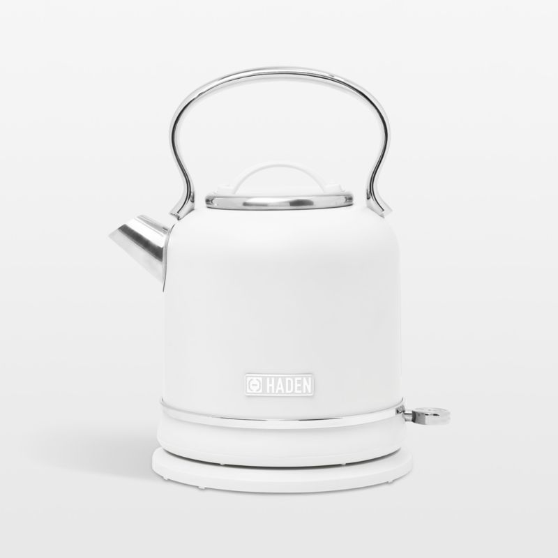 Inspired by traditional British homes, HADEN of England updates the stalwart electric kettle with modern hues and features while celebrating this kitchen essential. This stainless steel kettle coated in creamy ivory starts your day with a hot cup of tea and a delightful vintage look. With its clean curves and stainless steel accents, the kettle offers a bit of retro style. Boil-dry protection and a boiling indicator light keep you safe, while rapid-boil technology ensures you'll be sipping tea, an herbal tisane or pour-over or French press coffee in no time. Pair with the matching toaster for a coordinated countertop.