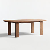 Showcasing a striking mix of cathedral and straight grain patterns, our Hearth dining table makes the most of its oak construction with a thick, arc-edged top, recessed apron and rounded plank legs. A self-storing butterfly extension leaf easily expands seating from six to eight. Wire brushing and a warm brown finish add to the rectangular table's straightforward charm and easy, approachable style.