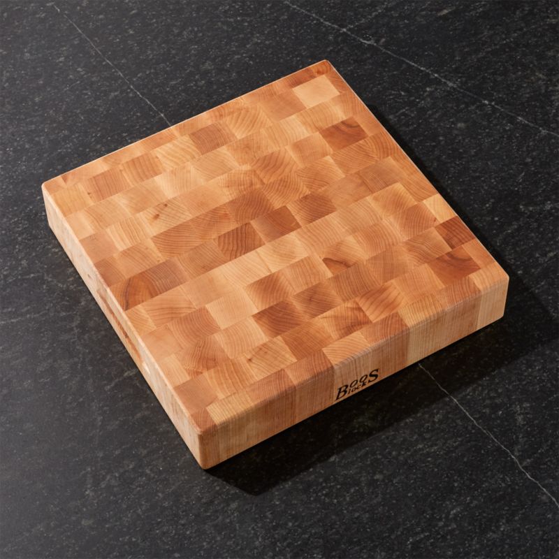 Pieced together in a traditional checkerboard pattern, each piece of end-grain hard rock maple in this gorgeous chopping block reveals its own grain and color. Crafted by the skilled woodworkers at Illinois-based John Boos & Co., the reversible board is unmatched in durability and sure to be a showstopper in every kitchen. Integrated hand grips make for a clean, streamlined look.