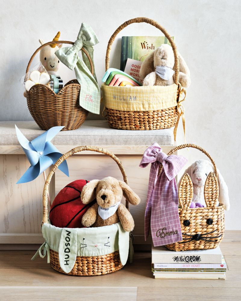 Delight your little ones on Easter morning with an Easter basket for kids. To create the ultimate arrangement (from the Easter Bunny, of course), start with a kids' Easter basket that's made of wicker; natural-colored options offer classic charm, while a personalized Easter basket makes an eye-catching statement and also helps add a unique touch to the Sunday morning fun. No matter your preference, line the bottom with faux grass to provide a spring-inspired base that enhances the presentation of their Easter basket stuffers.