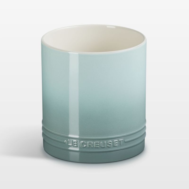 This timeless crock keeps essential utensils right at hand (and coordinates with your favorite Le Creuset cookware). Embossed with the company's iconic ringed design, the stoneware vessel offers plenty of space for all of your go-to cooking tools. Virtually non-stick, Le Creuset's prized porcelain glaze in a sea salt-inspired grey-green-blue hue resists cracking, crazing, chipping, scratching and staining so the crock always looks its best.