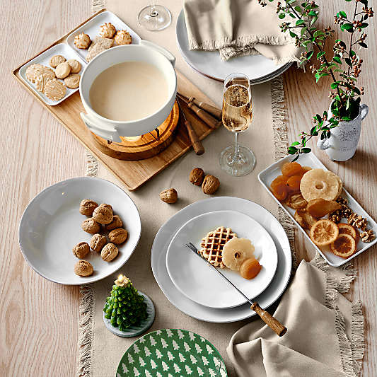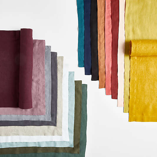 Decorate your dining table with a linen tablecloth. The lightweight material provides style and texture for formal and casual looks alike. Hosting Thanksgiving? Begin by styling the table with a linen tablecloth in seasonal shades. Then, compose each place setting with stoneware dinner plates and stainless steel flatware. Remember to give each guest a cloth napkin, too. To make the seating more comfortable, provide chair pads in hues that complement your color scheme. Tie everything together with vases filled with botanicals to give the tablescape some extra color. To figure out what size will work best on your round or rectangular dining table, consult our tablecloth sizing guide.