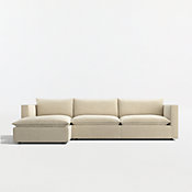 Our popular Lotus four-piece sectional strikes the perfect balance between clean, modern style and cloud-like comfort. Three chairs combine to form an inviting sofa, with a generously proportioned ottoman that switches from left to right for chaise-like lounging. Nestled on a low shelter frames, deeply plush pillows are key to this sectional's lounge-worthy luxury, packed with a fluffy down blend and just the right amount of inner support to look crisp. Just fluff and rotate to keep Lotus company-ready. The Lotus 4-Piece Reversible Sectional with Ottoman is a Crate and Barrel exclusive.