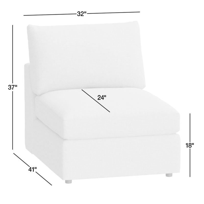 Lounge 32" Leather Armless Chair Sectional Piece25"Hheight32"Wwidth41"DdepthMeasurements are in inches.
