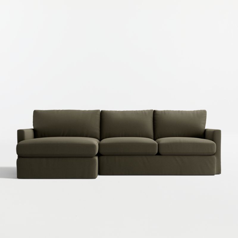 Bestselling Lounge sectional marries modern style with built-to-last durability and the casual ease of slipcovers. An excellent choice for high-traffic rooms, the sectional sofa offers the ultimate in comfort with extra-deep, low seats and supersoft back cushions that invite curling up and sinking in. Slim, modern track arms lighten the look and maximize sitting space, making Lounge the perfect place to relax. We love the slipcovers in Ascend, a cotton-blend performance fabric with the breezy look and feel of linen.