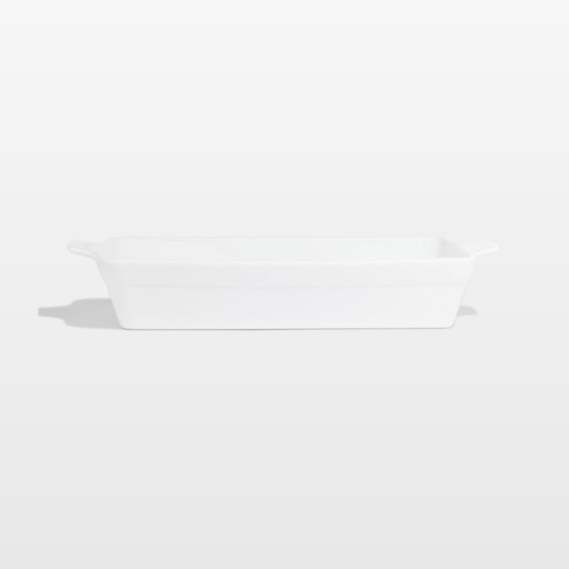 Crafted by skilled artisans in France's Loire Valley, this baking dish is made with high-quality porcelain from a specially guarded 202-year-old recipe. The rectangular dish coated with a bright white porcelain enamel glaze is naturally non-stick and heats evenly to produce perfectly baked goods. You'll love it for lasagne, enchiladas, cookie bars and lots more.
