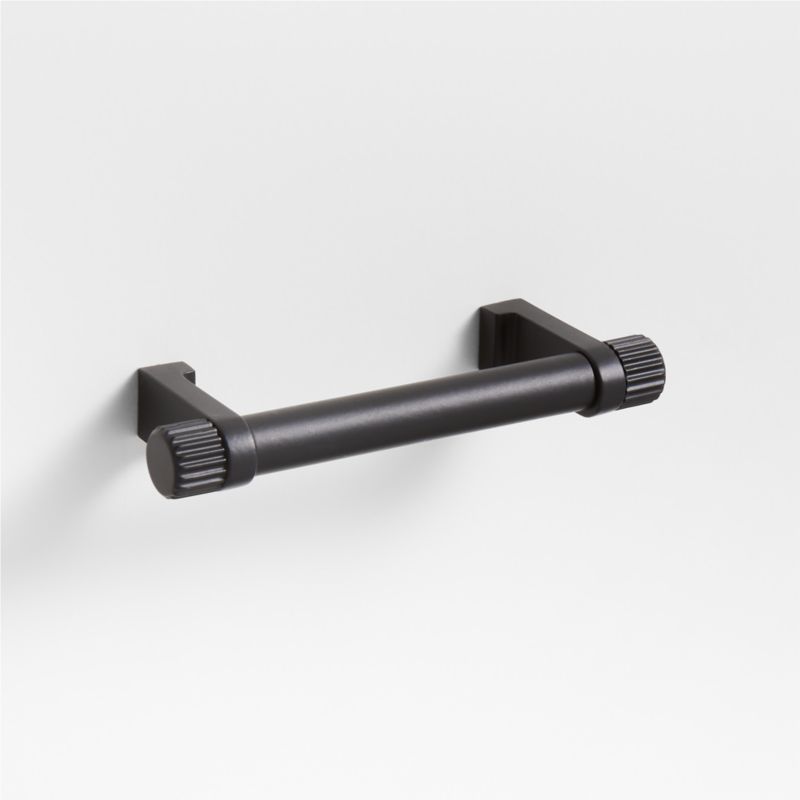 Sometimes it's the small things that pull a room together. That's why we've designed a hardware collection with modern silhouettes, clean lines and a touch of tradition to give your kitchen or bath that perfect finishing touch. Made of brass finished in matte black, the drawer pull lends industrial chic to its minimalist design. Fluted ends bring texture to the round pull that's held in place by L-shaped anchors softened with rounded edges. The three-inch drawer pull easily fastens to drawers and doors with included hardware.