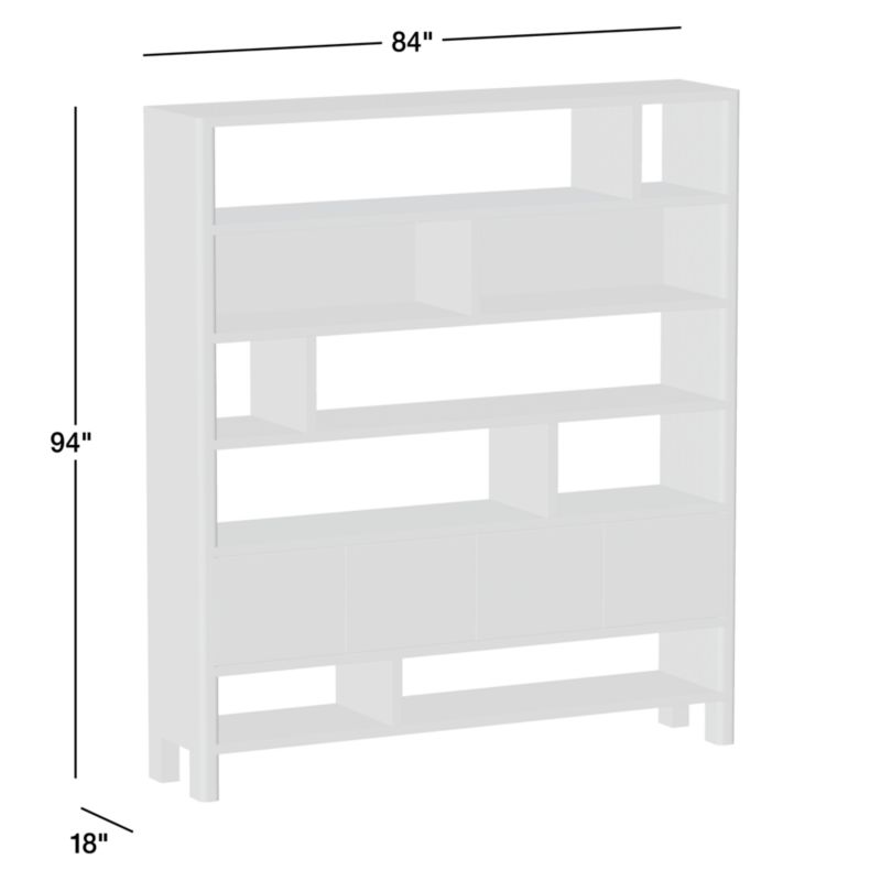 Noeline stretches wide to accent your wall with striking asymmetry and a wealth of open and closed storage. Made of oak and oak veneer, the linear bookcase offers an array of open shelving: four partitioned open shelves and a divided cubby. Two double-door cabinets open to generous interiors and anchor the look with seamless fronts that showcase the wood grain.