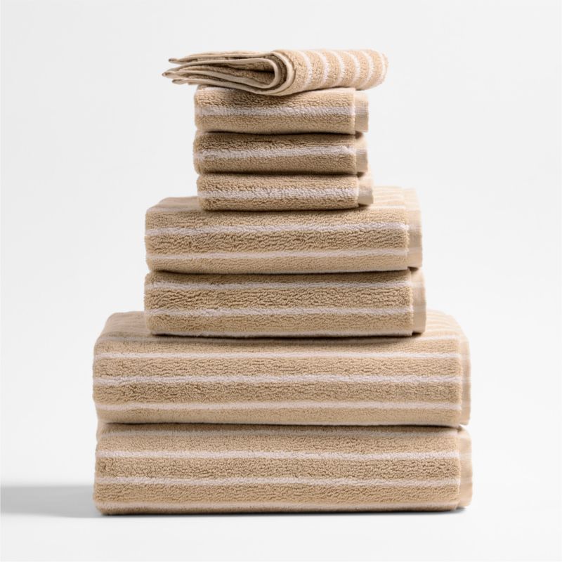 • View Organic Turkish Cotton Sand Beige and Crisp White Stripe Bath Towels, Set of 8 - image 1 of 4