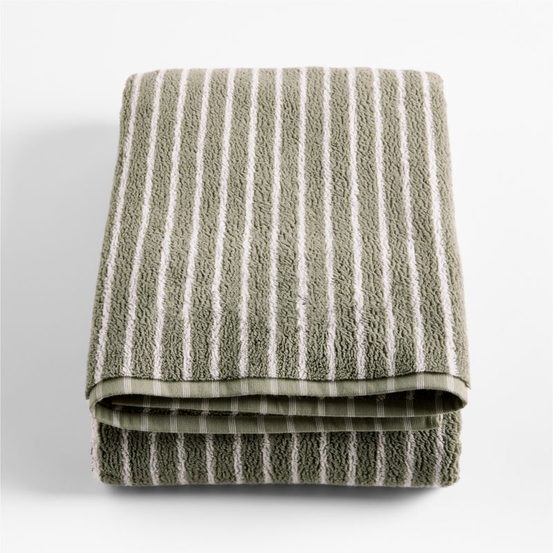 Organic Turkish Cotton Shadow Sage and Pampas Ivory Stripe Bath Sheet