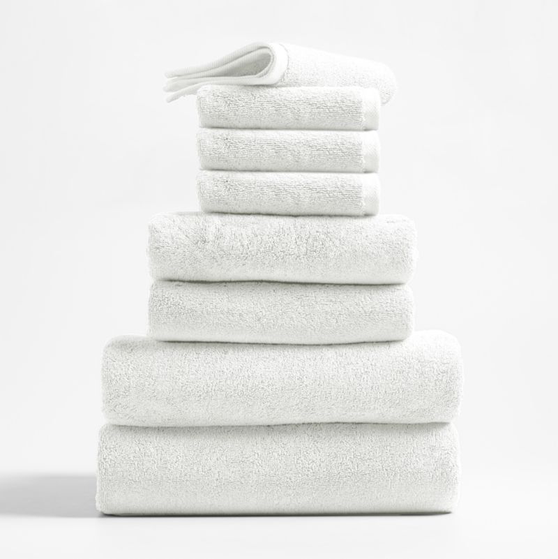 This set combines a full-suite—four washcloths, two hand towels and two bath towels—of classic white Turkish organic cotton towels at a great price. Extremely plush, dense and incredibly soft, the towels are made of double-ply organic cotton threads to ensure strength and durability. Each towel is woven with looped construction to dry quickly and with an intricate herringbone dobby weave along the border for a bit of elegant detail. Washing will only make these exceptional textiles more absorbent and soft.