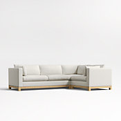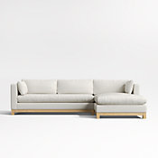 Long, low and made for lounging, our Pacific sectional complements contemporary living rooms with its easy, breezy style. Sustainably sourced wood with a light finish anchors the combination of a left-arm chaise and right-arm sofa with square legs and a full rail. Along with pillowy back cushions and supportive bolsters, the bull-nosed seat ensures a comfortable stay with medium-density, not-too-deep cushions. You'll love the sectional sofa upholstered in Olef, a 100% recycled fabric with subtle textured slub and marled yarns.