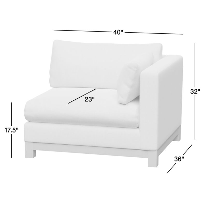 Long, low and made for lounging, our Pacific sectional collection complements contemporary living rooms with its easy, breezy style. Sustainably sourced wood with a light finish anchors the right-arm chair with square legs and a full rail. Along with a pillowy back cushion and a supportive bolster, the bull-nosed seat ensures a comfortable stay with a medium-density, not-too-deep cushion. Combine with other pieces to configure a sectional sofa that's just right for your space. You'll love it upholstered in Olef, a 100% recycled fabric with subtle textured slub and marled yarns.