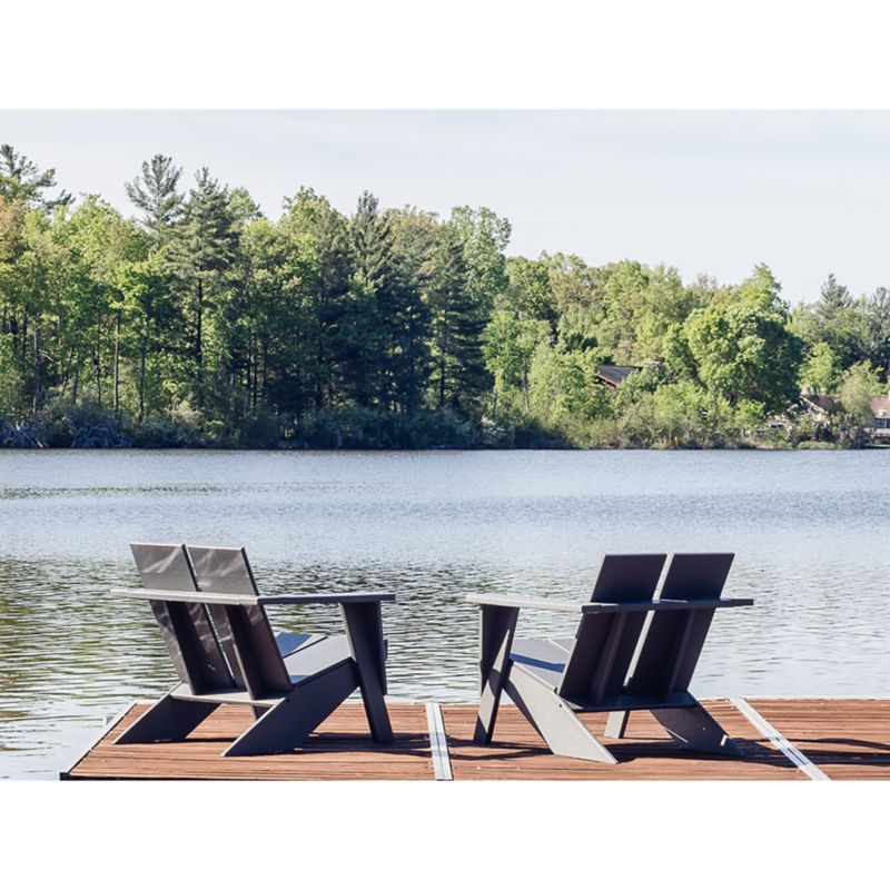 Kick back all summer (and beyond) in Paso. Our modern Adirondack chair with a squared-off back is crafted of super-durable POLYWOOD®—a proprietary blend of plastics that's weather- and UV-resistant. Bold and sculptural with exaggerated angles and wide planks, Paso's exclusive design is punctuated with broad armrests and flange-accented front legs. Pair the slate grey chair with the coordinating ottoman for the ultimate in outdoor lounging.