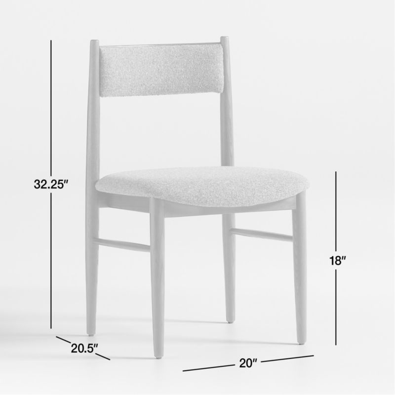 Our dining chair taps into the same stylish era as our furniture collection of the same name. With its classic mid-century modern silhouette, the brown-finished ash chair features subtly tapered turned legs and a barrel-curved backrest. A padded back and cushioned seat that extends slightly beyond the frame to soften the look and provide linger-inducing comfort. Rich with heathered color variation, the mustard performance upholstery textures with a mini bouclé-like weave. Our Petrie upholstered dining chair is a Crate & Barrel exclusive.