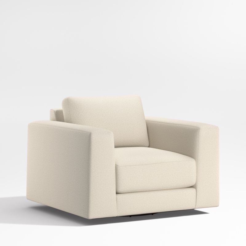 Peyton is crafted with comfort and quality in mind. Designed for the modern family, the swivel chair features generous, settle-in cushions nestled between wide taper arms. Beautifully upholstered to bring out Peyton's modern, straightforward lines, the chair promises a comfy stay thanks to its supportive innerspring suspension.