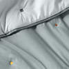 Stitched geometric shapes in bright pops of color give our comforter a sophisticated yet playful look. Embroidered in warm hues of savannah yellow, terracotta, pine green, brulee brown and smoke blue, the all-over pattern pops against the deep indigo comforter, which reverses to a solid mist blue. The comforter is made of airy and lightweight organic cotton voile, designed to feel as comfy and cozy as your kid's favorite puffy jacket. Pair the comforter with the matching sham or any of the coordinating colors from our kids' bedding collections.