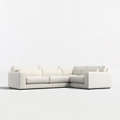 Years in the making, we pulled in customer-favorite design elements to create our Retreat sectional, a plush new hangout spot with a clean, modern look. The combination of right-arm chaise and left-arm sofa has soft-yet-supportive seat cushions and lumbar pillows that remove for a deeper, more loungey sit. Extra-wide arms provide a spot to park a book, tablet or bowl of popcorn, and T-shaped back cushions snuggle in nicely to keep the look clean and current. Textural and forgiving, the upholstery fabric we love is Serene—a beach-cleanable, family-friendly sculpted weave that reads timeless and contemporary.