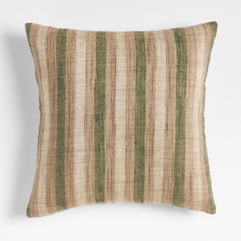 Alternating stripes of palm frond green, sandy tan and sunbaked ivory, our Riviera pillow is heathered throughout with the natural color of undyed yarn. Despite its rustic appearance, the pillow has a refined, silky soft hand and modern matte look. Our square pillow includes your choice of a plush feather-down or lofty down-alternative insert.